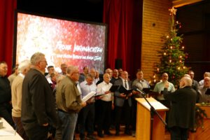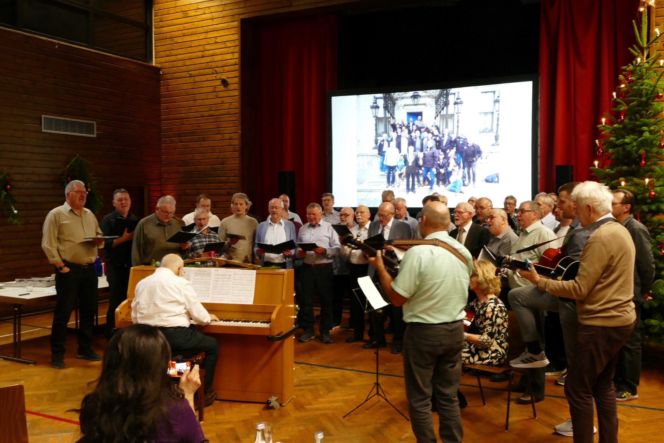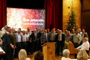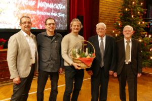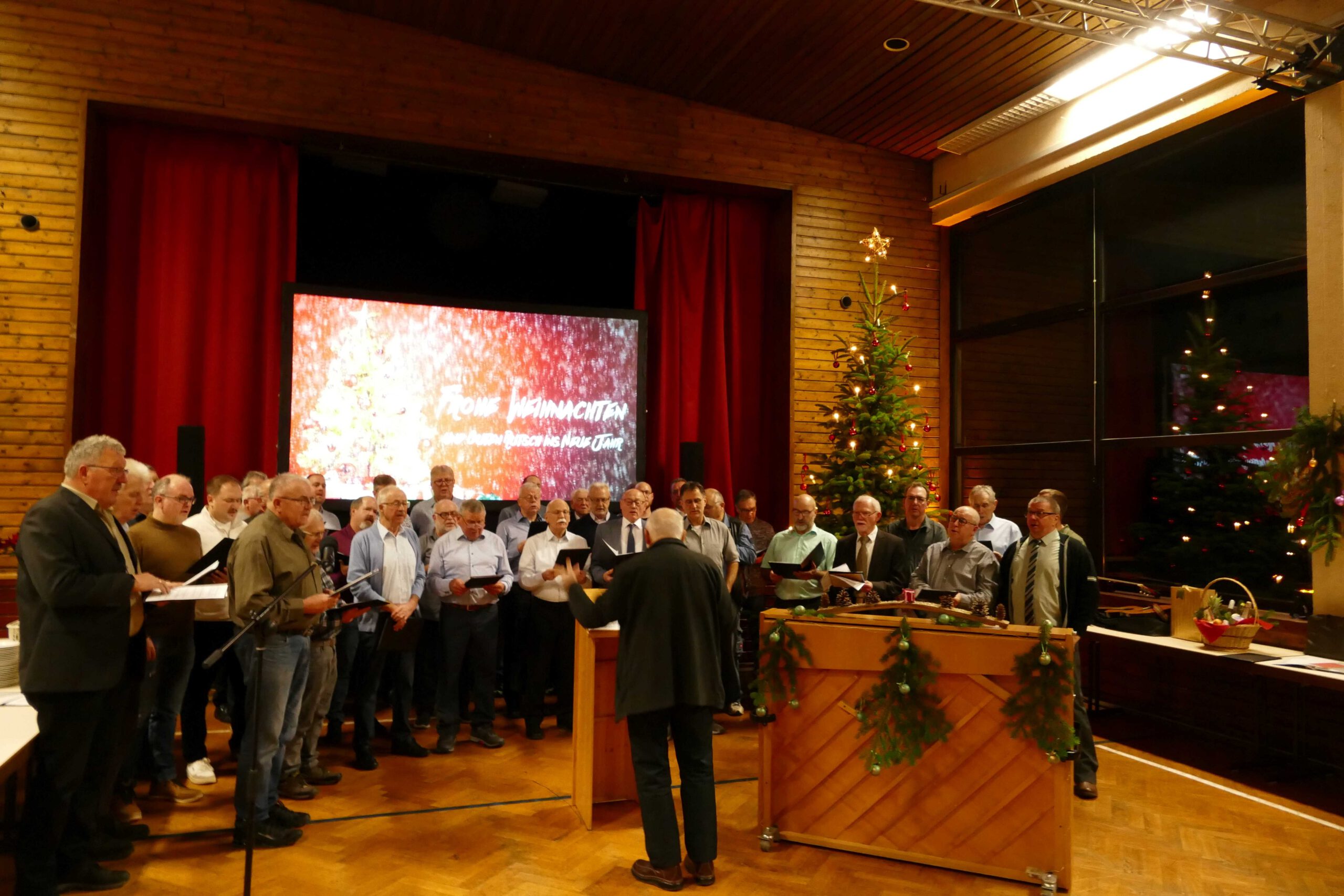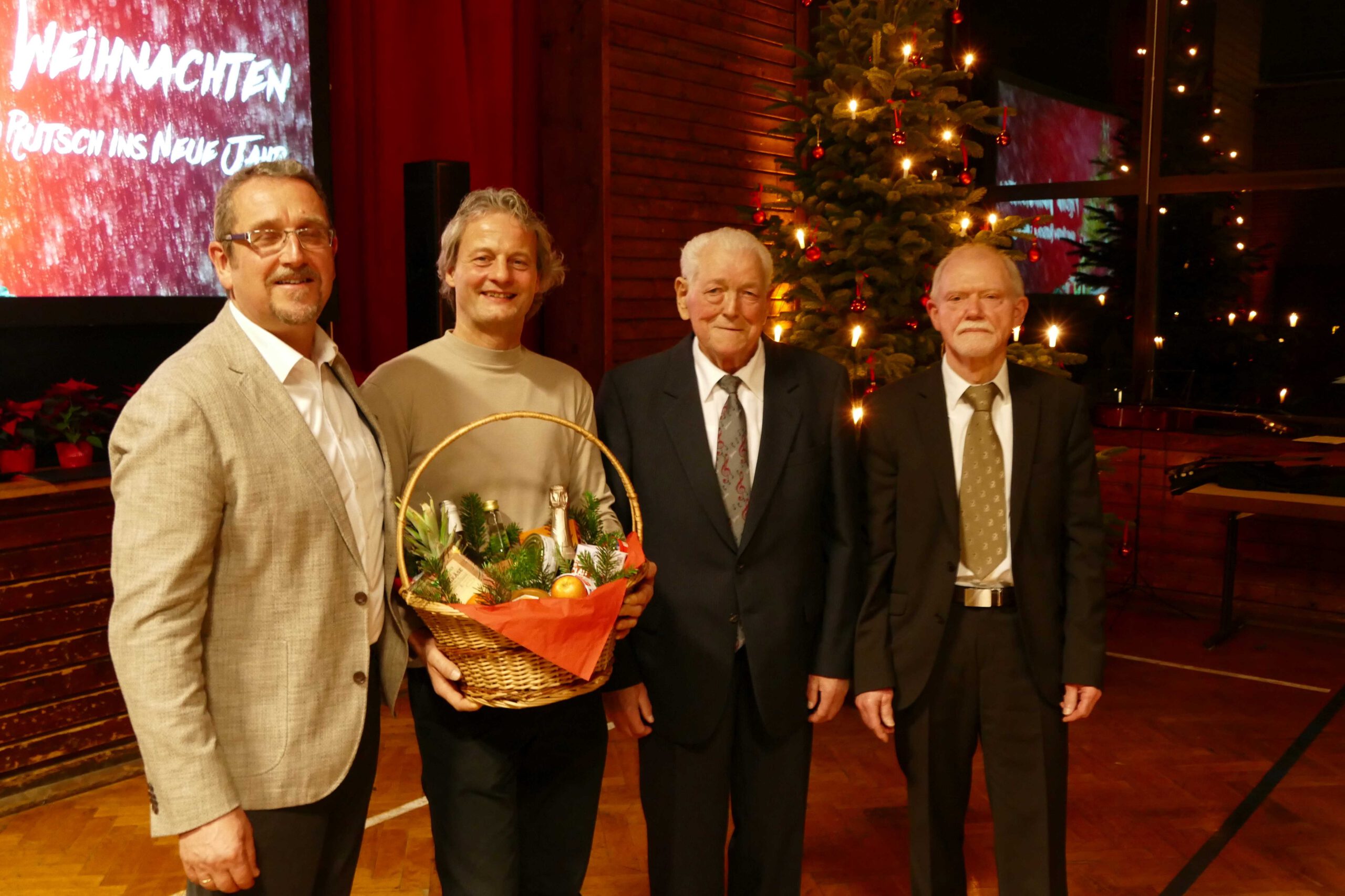 Seine Weihnachtsfeier hielt der Männergesangverein Eintracht Bargen am dritten Adventssamstag in der liebevoll dekorierten Bargener Turnhalle ab. Gänsehautgefühle lösten diesmal nicht nur die weihnachtlichen Weisen sondern eine ganz besondere Ehrung aus. Für unglaubliche 70 aktive Sängerjahre wurde Wilhelm Brenner ausgezeichnet – eine Leistung, die so außergewöhnlich ist, dass es dafür keine offiziellen Urkunden mehr gibt. Die Laudatio hielt sein langer Wegbegleiter in früheren Zeiten, der heutige Ehrenvorsitzende Helmut König. „70 Jahre ist ein beachtlicher und bedeutender Meilenstein in der Vereinsgeschichte. Heute bist du ein Hochkaräter, wie man in Insiderkreisen bei diesem Jubiläum zu sagen pflegt“ führte König aus. Im Jahr 1955 trat der Jubilar dem MGV Eintracht Bargen bei. König erwähnte die zahlreichen Ehrungen, welche Wilhelm Brenner erhalten hat, so u.a. die silberne Ehrennadel des Bädischen Sängerbundes für 25 Jahre im Rahmen des 100-jährigen Vereinsjubiläums und die goldene Ehrennadel für 40 Jahre im Jahr 1996. Aus diesem Anlass wurde er damals auch zum Ehrenmitglied ernannt. Von 1982 bis 1986 war er Stimmenvertreter im 1. Bass und übte im Anschluss 21 Jahre lang bis zum Jahr 2007 das Amt des stellvertretenden Vorsitzenden aus. Der Ehrenvorsitzende führte weiter aus: „Lieber Wilhelm, dein Jubiläum mit sieben Jahrzehnten ist von Idealismus, Engagement, Verlässlichkeit und Vereinstreue geprägt. Du bist ein Vorbild unseres nahezu 145 Jahre alten Traditionsvereins. Dafür gebührt dir neben Dankbarkeit und Wertschätzung ein hohes Maß an Respekt.“ Er wünschte ihm für die Zukunft alle Gute und überreichte ihm einen Geschenkkorb. Zu seinen Ehren erhoben sich alle Anwesenden von den Plätzen. Begonnen hatte die Weihnachtsfeier mit zwei Liedbeiträgen des Chores, nämlich „Winternächte“ und „Es ist ein Ros entsprungen“. Dazwischen hatte Silke Emmerich, die Frau des Vorsitzenden, eine kleine Geschichte vom Tannenbaum mitgebracht. Mit der Jahreslosung der evangelischen Kirchengemeinde „Prüft alles und behaltet das Gute“ begann der Vorsitzende Steffen Emmerich seine Ansprache. Auch im Verein habe man im ablaufenden Jahr wieder viel unternommen. Das meiste der Abläufe habe sich bereits gut eingespielt und sind seit Jahrzehnten bestens durchdacht. „Leise rieselt der Schnee“ wurde dann obligatorisch für das Hintergrundbild auf der Leinwand gesungen, wo unter einem Schneerieseln eine frohe Weihnachten und ein guter Rutsch ins neue Jahr gewünscht wurde. Nach dem gemeinsamen Essen sprach Bürgermeister Joachim Weschbach, der erstmals in diesem Kreis weilte, ein Grußwort. „Die Zeit der Besinnung, Gemeinschaft und Dankbarkeit wird beim MGV gelebt. Er ist mehr als ein Chor, er ist ein wichtiger Bestandteil des örtlichen und kulturellen Lebens über Generationen hinweg“ meinte Weschbach. Nach dem Totengedenken ließ der Vorsitzende Steffen Emmerich das Jahr 2025 in Form von Bildern noch einmal Revue passieren. „Viel wurde geplant und nahezu alles umgesetzt“ meinte er. Der Höhepunkt sei das 50-jährige Chorjubiläum von Chorleiter Friedemann Buhl mit zwei Konzerten gewesen. Einen kleinen Ausblick auf das Jahr 2026 gab er dann noch. So wirkt der Chor u.a. beim Neujahrsempfang der Gemeinde am 23. Januar, bei der Jubelkonfirmation im März und der Open-Air-Veranstaltung am 19. Juni in Helmstadt im Rathaushof mit. Das Vier-Bargen-Treffen im Bargen bei Schaffhausen Mitte Juli, Schlachtfest und Meerrettichessen sind weitere Unternehmungen. Eine weitere Ehrung stand dann noch an. Sven Tanz erhielt diese für 20-jährige aktive Sängertätigkeit. Seit seinem Eintritt im Jahr 2005 im 2. Bass hat er u.a. das 125-jährige Jubiläum, die Jubiläumskonzerte zum 40- bzw. 50-jährigen Dirigentenjubiläum und das „Mostkrugkonzert“ miterlebt. Als Stimmführer seit 2008 und als Fahnenbegleiter seit 2012 übernimmt er weitere Verantwortung. Passend zu den vorgenommenen Ehrungen wurde mit viel Enthusiasmus das Lied „Es lebe die Freundschaft“ intoniert. Vor den beiden Abschlussliedern „Vor langer Zeit in Bethlehem“, bekannt geworden als „Mary´s boychild durch die Gruppe Boney M. und „Engel“ von Marius Müller-Westernhagen dankte der Vorsitzende Steffen Emmerich allen Helferinnen und Helfern im Hintergrund, welche zum Gelingen der Weihnachtsfeier beigetragen haben. Für Chorleiter Friedemann Buhl hatte er noch drei kleine Geschenke mitgebracht. Sie sollten einen Teil seiner Erlebnisse in seiner 50-jährigen Tätigkeit dokumentieren. Einen Gutschein der „Epfenbacher Landmetzgerei“ erhielt Buhl, da er sich mit dem damaligen Epfenbacher Dirigenten Heinz Funk in den Gesangswettbewerben immer heiße Duelle geliefert hatte. Eine der Firmen, welche beim 100-jährigen Vereinsjubiläum im Festbuch inseriert hatten und heute noch bestehen, ist die Tankstelle Schütz in Neckarbischofsheim. Emmerich hatte daher einen Tankgutschein parat. Und schließlich gab es für Buhl noch eine Flasche irischen Whisky, der ihn an die Irland-Reise im Jahr 2018 erinnern soll.